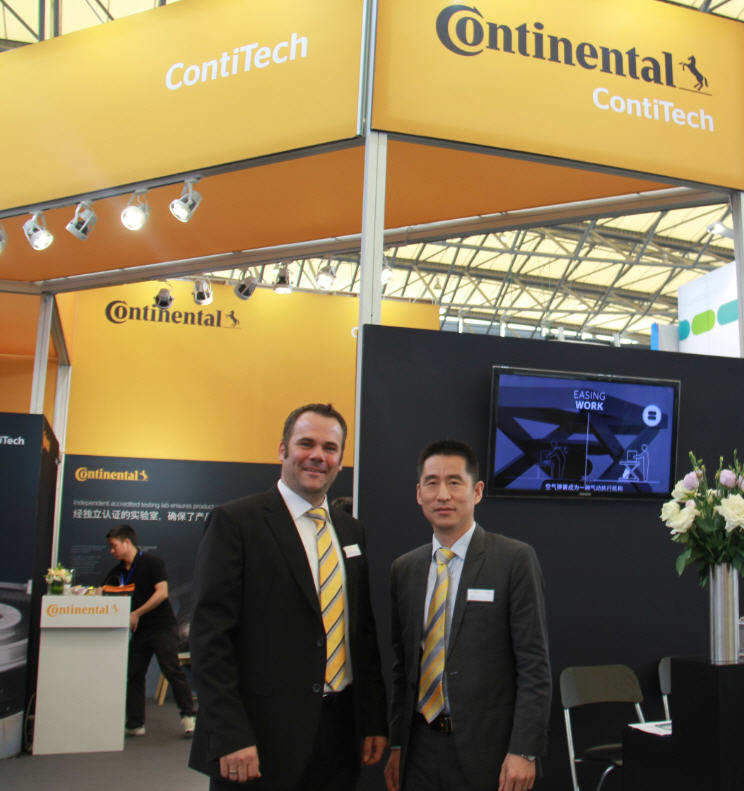 康迪泰克空氣彈簧系統(tǒng)業(yè)務(wù)單元區(qū)總經(jīng)理譚貝克(左)和康迪泰克空氣彈簧系統(tǒng)業(yè)務(wù)單元區(qū)銷售市場總監(jiān)郝建華(右)合影