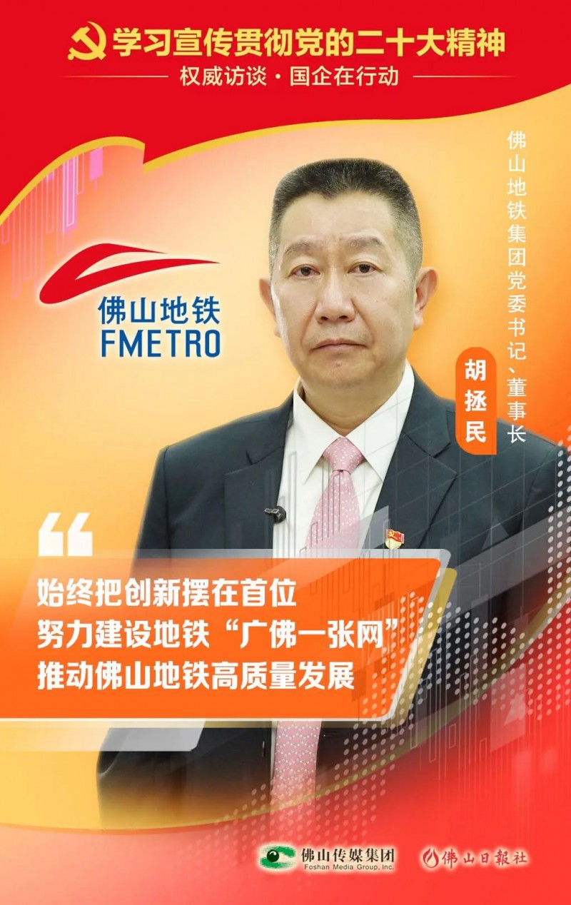 潮涌千帆競,奮楫正當時。12月7日,佛山市地鐵集團有限公司黨委書記、董事長胡拯民接受佛山傳媒集團專訪時表示,在黨的二十大精神指引下,佛山地鐵集團圍繞“交通強國”目標要求,錨定市委“515”高質量發展戰略目標,聚焦主責主業,強化軌道交通建設運營功能,提升高質量發展水平,努力把地鐵集團做強做優做大。
