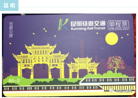 昆明地鐵最新發行的普通單程票以昆明地標性的建筑以及古跡名勝作為設計元素,用剪影的表現形式,讓地鐵穿插于城市脈搏當中,相互交融,帶動著昆明快速前行。整個票卡正面鋪滿的七彩色帶,既體現了七彩云南的概念,也體現出軌道交通高速便捷舒適的理念。昆明地鐵票價2元起步,按實際乘坐里程“遞遠遞減”跳檔計價,跳檔里程分別為5、7、9、11、13公里等,每跳一檔,票價均按一元增加。
