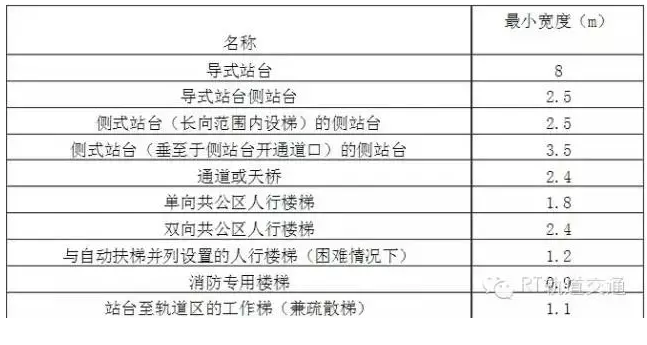 車站各部位的最小寬度
