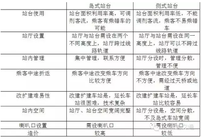(6)島式站臺與側式站臺優缺點比較表:
