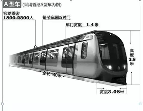 標(biāo)準(zhǔn)A型車車寬3米,車高3.8米,車體有效長度22.1米,一般為8者6節(jié)編組,軸重16t,單向小時最大客運量4.5-7.5萬人。