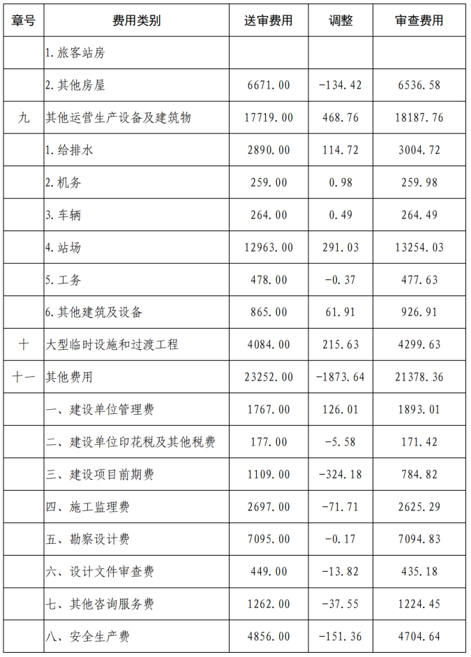 附表:新建廣梅汕鐵路汕頭站至汕頭廣澳港區初步設計概算審查表