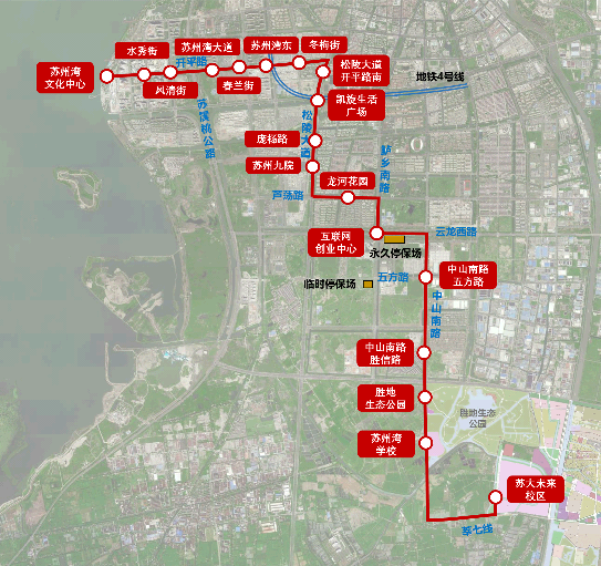 T2線二期工程線路長約8.6km,設7座車站,新建2座側式站(蘇州灣學校站、蘇大未來校區站),其余車站均改造或利用既有公交車站;于云龍西路、云龍西路復線之間地塊增設1處永久停保場,占地面積約34000m2。