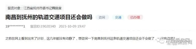 2023年10月9日,有網友咨詢南昌到撫州的軌道交通項目還會做嗎?之前在網上看到出來了計劃,這幾年都沒有動靜了,想咨詢一下南昌到撫州這條軌道交通項目還會不會做了,有沒有進展?