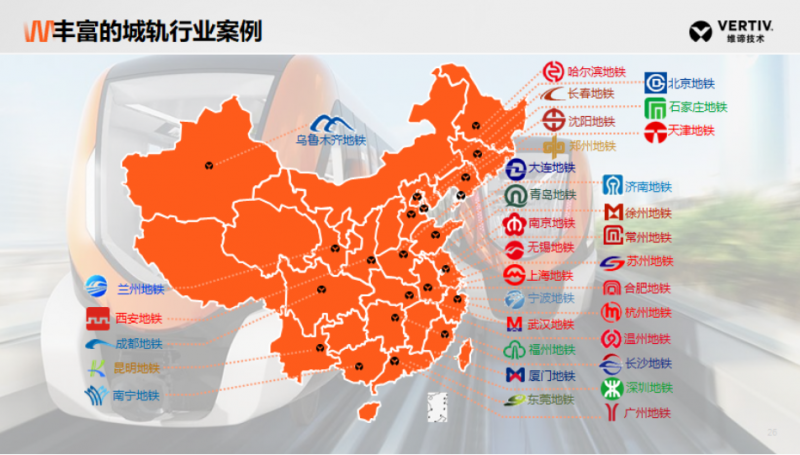 目前,維諦技術(shù)解決方案在全國各地鐵城市均有大量的應(yīng)用,如青島地鐵、濟(jì)南地鐵、成都地鐵、西安地鐵、北京地鐵、天津地鐵、廣州地鐵、深圳地鐵等。維諦技術(shù)基于豐富的應(yīng)用案例及產(chǎn)品設(shè)計(jì)經(jīng)驗(yàn),持續(xù)關(guān)注軌道交通行業(yè)的發(fā)展和變革,并不斷對產(chǎn)品和解決方案進(jìn)行優(yōu)化和提升,為軌道交通事業(yè)的發(fā)展貢獻(xiàn)力量。
