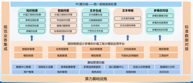 為此,鐵一院攜手商湯大裝置打造“國(guó)鐵價(jià)值工程多模態(tài)大模型應(yīng)用平臺(tái)”,首次將多模態(tài)大模型技術(shù)應(yīng)用于鐵路工程設(shè)計(jì)領(lǐng)域。通過(guò)融合文本、圖紙、表格、公式等異構(gòu)數(shù)據(jù),構(gòu)建統(tǒng)一知識(shí)庫(kù)和專業(yè)推理模型,實(shí)現(xiàn)了知識(shí)檢索、智能問(wèn)答、文本生成、文本審核、多模態(tài)對(duì)話等核心功能,有效破解了知識(shí)傳承難、融合性差、應(yīng)用度低等行業(yè)痛點(diǎn),加速國(guó)鐵行業(yè)數(shù)智化轉(zhuǎn)型。