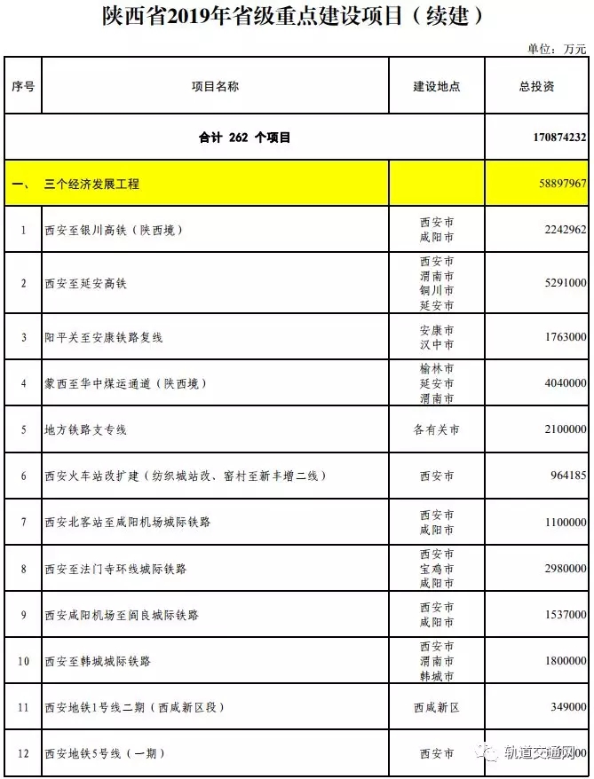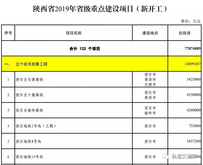 近日,陜西省發改委發布2019年省級重點建設項目年度計劃。2019年,陜西省安排省重大項目600個,總投資約4萬億元。其中續建項目262個,總投資約1.7萬億元;新開工項目123個,總投資約0.8萬億元;前期項目215個,總投資約1.5萬億元。