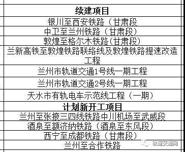 3月25日,甘肅省發改委網站公布《2019年省列重大項目名單》。名單顯示,2019年省列重大項目151個,其中,續建項目78個,計劃新增開工項目50個,預備項目23個。其中軌交項目續建7項、計劃新增開工4項。包括蘭州市軌道交通1號線一期工程、蘭州市軌道交通2號線一期工程、天水市有軌電車示范線工程(一期)3項城市軌道交通,以及8項鐵路工程。