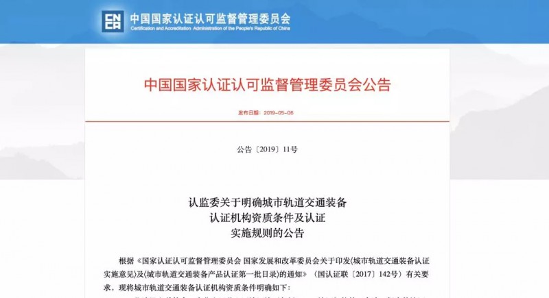 根據(jù)《國家認(rèn)證認(rèn)可監(jiān)督管理委員會(huì) 國家發(fā)展和改革委員會(huì)關(guān)于印發(fā)〈城市軌道交通裝備認(rèn)證實(shí)施意見〉及〈城市軌道交通裝備產(chǎn)品認(rèn)證第一批目錄〉的通知》(國認(rèn)證聯(lián)〔2017〕142號(hào))有關(guān)要求,現(xiàn)將城市軌道交通裝備認(rèn)證機(jī)構(gòu)資質(zhì)條件明確如下: