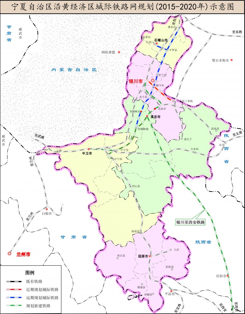 附件:寧夏自治區沿黃經濟區城際鐵路網規劃(2015~2020年)示意圖