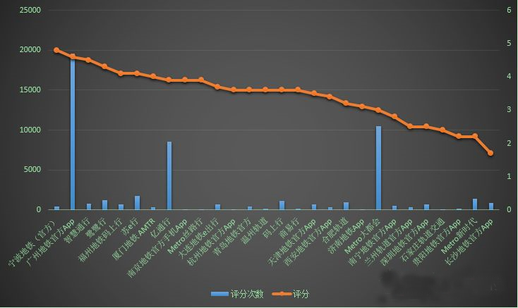 本文主要統計28個地鐵出行App在App store的用戶評分情況。