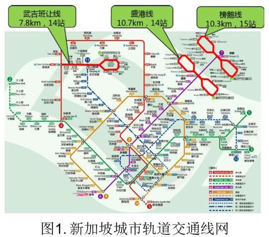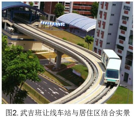 典型的中運(yùn)量接駁線,以新加坡為代表。新加坡,國(guó)土面積714km2,人口518萬,目前運(yùn)營(yíng)5條地鐵(200km),3條APM(28.8km)線路。武吉班讓線、盛港線、榜鵝線等三條線路選擇了APM膠輪路軌作為地鐵骨干線網(wǎng)的接駁線,解決了社區(qū)居民“最后一公里”出行問題,見圖1和圖2。