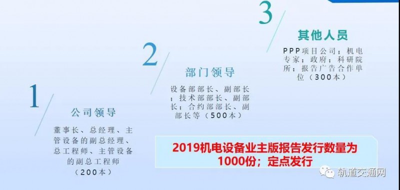 《2019業主版報告》為軌道交通網(m.628709.com)獨家出版,初衷為全心服務于軌道交通業主單位設備選型,其他非贈閱人員如有需求,請閱讀者推薦至軌道交通網咨詢,13482147664。