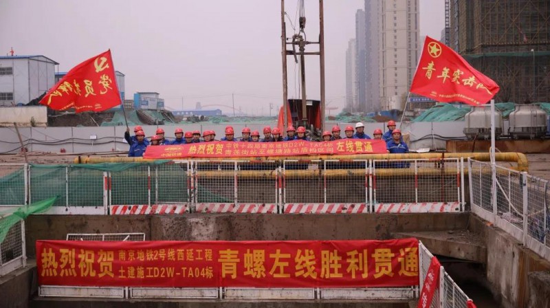 5月10日上午6時,螺塘路站西端頭接收井內,“先鋒號”盾構機緩緩旋轉著盾構刀盤破土而出,南京地鐵2號線D2W-TA04標青蓮街~螺塘路盾構區間右線順利貫通。至此,2號線西延線實現天保街站~青蓮街站、青蓮街站~螺塘路站盾構區間雙向隧道全部貫通,為線路早日通車奠定基礎。