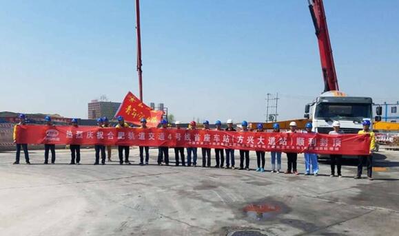 4月19日,隨著最后一塊頂板混凝土的順利澆筑,合肥軌道交通4號線土建1標方興大道站完成主體結構封頂,這也是4號線首座主體結構封頂車站。