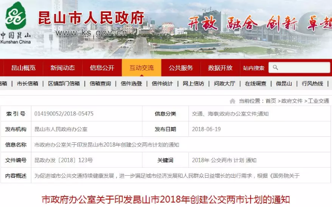 一直備受矚目的地鐵S1線又有了新消息,近日在昆山官網上看到市政府辦公室關于印發昆山市2018年創建公交兩市計劃的通知。