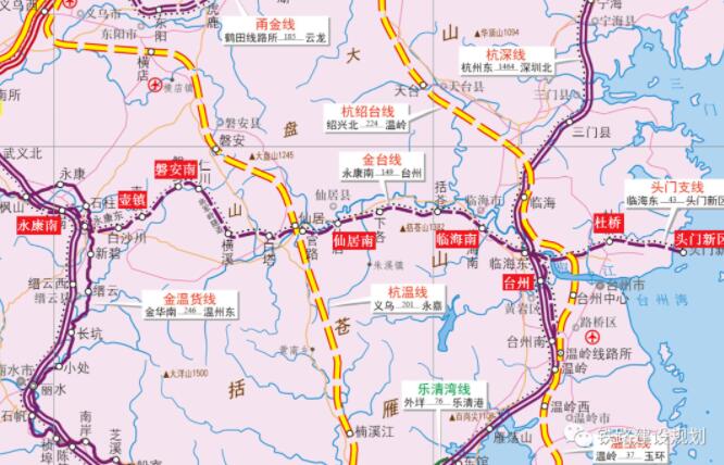 金臺鐵路全長234.923公里,為國鐵I級單線客貨兼運鐵路,預留雙線條件,設計時速160公里。沿線在永康南、壺鎮(zhèn)、磐安南、仙居南、臨海南、臺州西、杜橋、頭門港等8個站辦理客運業(yè)務。
