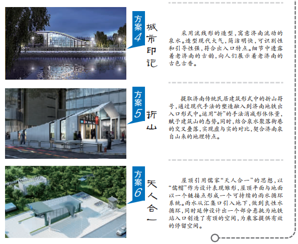 濟南地鐵地下車站標準出入口的設計方案出來啦!7月3日開始面向社會公示,一共有6種方案,歡迎市民積極參與投票,選出你心目中最滿意的方案。