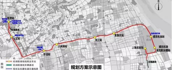線路走向如何?記者留意到,根據本次公示范圍,軌道交通機場聯絡線(虹橋站—上海東站站)線路總長約68.6公里,線路起于虹橋樞紐,主要沿鐵路滬杭客專東側、外環高速S20南側及迎賓高速S1南側走行。全線設置9座車站,分別于虹橋樞紐內設虹橋站,于滬松公路北側設七寶站,于規劃景洪路東側設華涇站,于浦星公路西側設三林南站,于康新公路東側設張江站,于唐黃路東側設度假區站,于浦東機場T1和T2航站樓中間設浦東機場站,于規劃航站樓附近設浦東機場規劃航站樓站,于規劃鐵路上海東站地區設上海東站站(以上站名均為暫命名)。