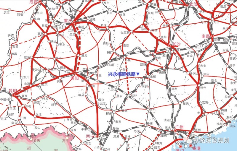 興永郴贛鐵路在國(guó)家中長(zhǎng)期鐵路規(guī)劃中的位置▼