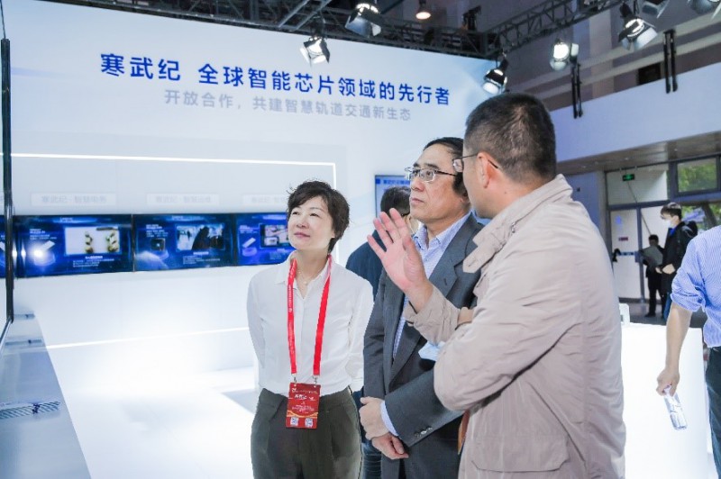城市軌道交通協會信息化專業委員會副主任邢智明參觀寒武紀展臺