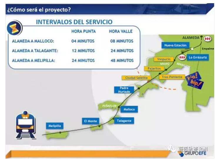 圣地亞哥-梅利皮拉鐵路項(xiàng)目,預(yù)計(jì)全長61公里,連接首都與8個(gè)地區(qū),共有11個(gè)站點(diǎn),主要連接首都中央車站,塞利約區(qū),邁普區(qū),烏塔多區(qū),佩涅弗洛區(qū),塔拉甘特區(qū),蒙特區(qū)和梅利皮拉區(qū),并且將會(huì)與首都圣地亞哥地鐵1號(hào)線,6號(hào)線連接。年運(yùn)載量將達(dá)到6000萬,線路運(yùn)行時(shí)間將減少近2個(gè)小時(shí)。
