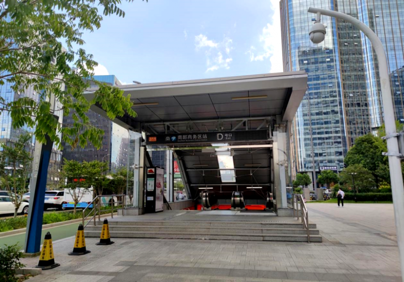站在南部商務區地鐵站地面出入口,現場可以看到,區別于其他地鐵車站,這個車站的地面沒有突兀的冷卻塔,地面環境和諧,景觀通透,秘密就在于這個站應用了地鐵站專用的“無塔冷卻”直膨空調系統。