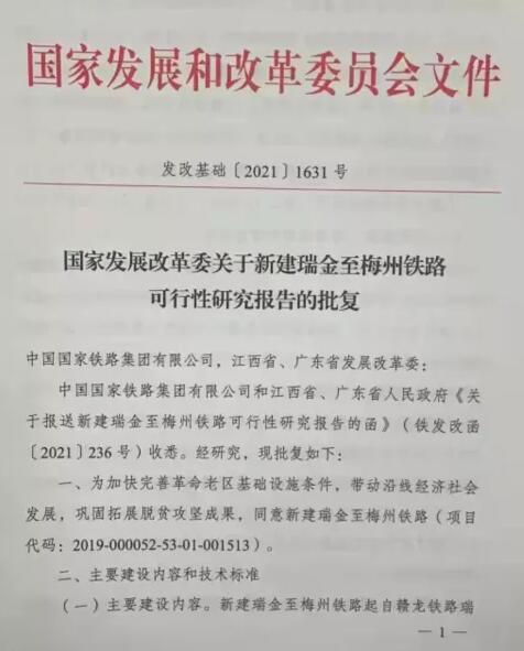 11月23日消息:記者從市發(fā)改局了解到,日前,國家發(fā)改委正式批復(fù)同意新建瑞金至梅州鐵路。該線路將進一步完善革命老區(qū)基礎(chǔ)設(shè)施條件,有助于帶動沿線經(jīng)濟社會發(fā)展,鞏固拓展脫貧攻堅成果。