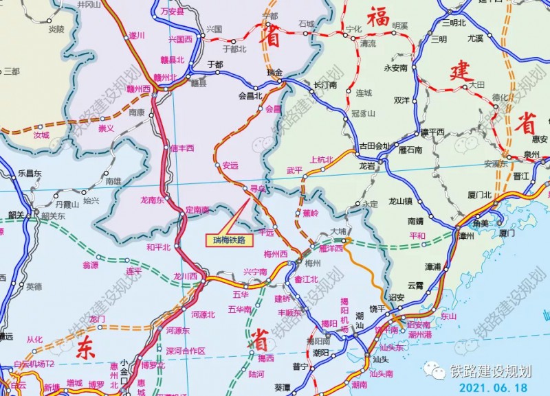 瑞梅鐵路設(shè)計速度為160公里/小時,規(guī)劃遠景年輸送能力為每天13對客車,貨運量144萬噸,其中廣東段由梅汕鐵路公司負責實施,建設(shè)工期4.5年。