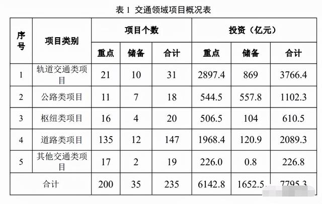 交通戰略項目共計 235 個,總投資額 7795.3 億元。
