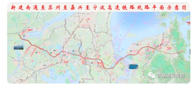 根據初步設計,項目新建線路長度300.954km,設計時速350km/h,設南通西、張家港、常熟西、蘇州北、汾湖、嘉興北、嘉興南、海鹽西、慈溪、莊橋等10座車站。