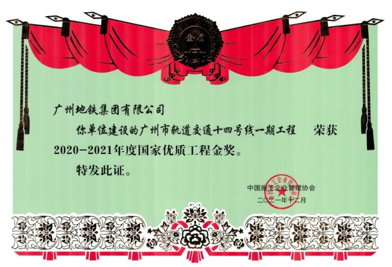 熱烈祝賀由我協(xié)會(huì)推薦的廣州市軌道交通十四號(hào)線一期工程、深圳市城市軌道交通9號(hào)線工程、武漢市軌道交通6號(hào)線一期工程、青島地鐵二號(hào)線一期工程等四個(gè)項(xiàng)目榮獲2020-2021年度國家優(yōu)質(zhì)工程金獎(jiǎng)。