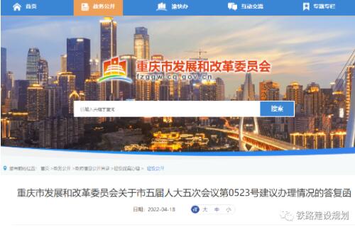 4月18日,重慶市發(fā)改委公開了《關于市五屆人大五次會議第0523號建議辦理情況的答復函》,針對渝湘高鐵黔江至吉首段規(guī)劃建設情況進行了答復,詳情如下: