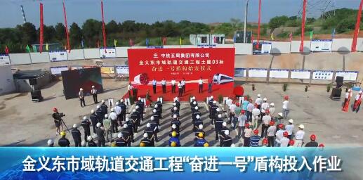 7月28日上午,金義東市域軌道交通工程03標(biāo)“奮進(jìn)一號”盾構(gòu)投入作業(yè)。出席儀式的領(lǐng)導(dǎo)為項(xiàng)目黨員突擊隊(duì)、工人先鋒號、青年突擊隊(duì)授旗并一起點(diǎn)亮“奮進(jìn)一號”盾構(gòu)投入作業(yè)啟動球。