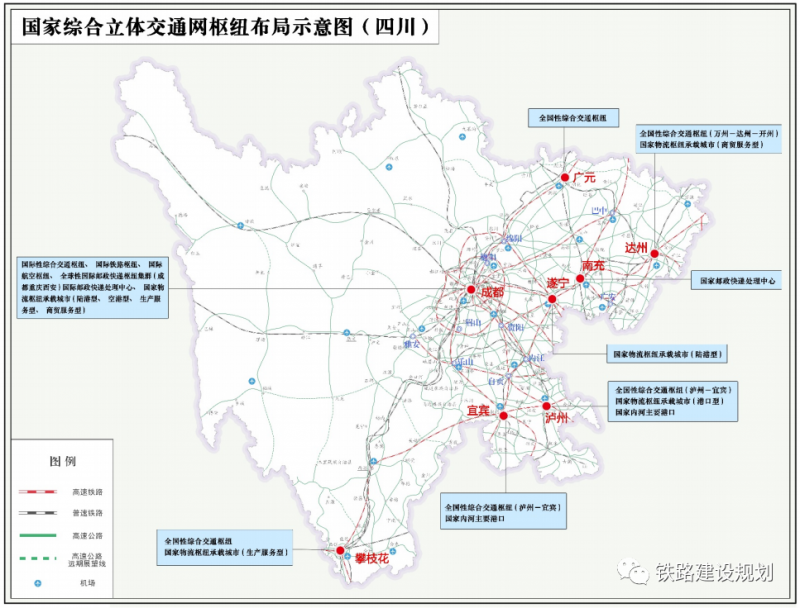 強化全國性樞紐銜接輻射帶動作用,提升瀘州—宜賓、攀枝花、達州、廣元的重要門戶樞紐功能。