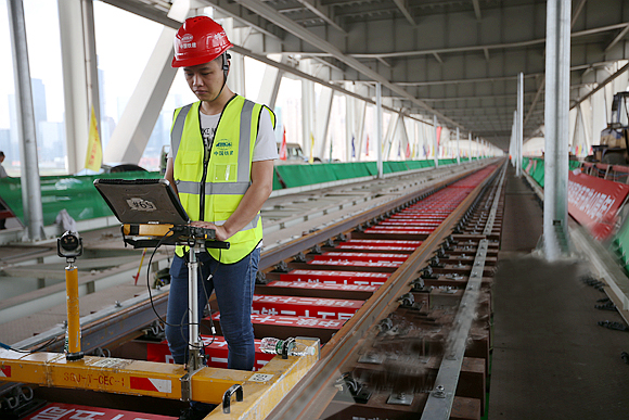 短軌鋪設并不簡單。該負責人告訴記者,因朝天門長江大橋為鋼桁梁結構,軌道對線型精度要求高。為使軌枕與梁體結構完全契合,確保軌道的平穩順暢,經反復論證后,軌道環線朝天門長江大橋最后確定采用合成樹脂軌枕加工及安裝工藝。