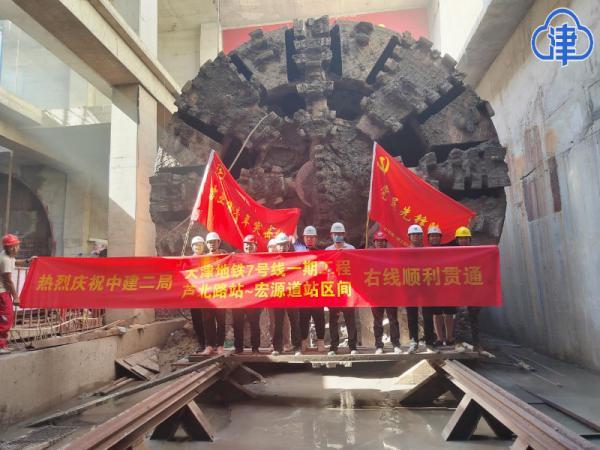 7月6日19點19分,隨著“超越號”盾構機刀盤緩緩破土而出,由中建基礎牽頭、中建二局施工的天津地鐵7號線蘆北路站-宏源道站區間(以下簡稱蘆宏區間)右線順利貫通。這是3標項目第六臺順利接收的盾構機,也是全線第九臺順利接收的盾構機。