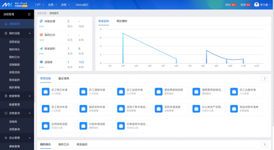 走進成立才三年的某軌道公司,十多個部門幾百號人,分布在不同的工位上,不太像傳統(tǒng)國企的風(fēng)格。信息中心的小張表示,雖然公司很新,但各種信息系統(tǒng)已經(jīng)建設(shè)得較全,OA辦公已經(jīng)是第二次升級了。以前,員工要頻繁在各種業(yè)務(wù)系統(tǒng)間切換,以出差為例,先在OA上提申請,然后去攜程訂機票、酒店,再用其它軟件打車,回來后再去財務(wù)系統(tǒng)上提報銷,自從基于藍凌MK-PaaS平臺升級數(shù)字化辦公平臺后,在“新司機”的帶領(lǐng)下,可以一站搞掂所有事情,而且差旅相關(guān)費用不需要墊資,從普通員工到財務(wù)人員都覺得便捷多了。