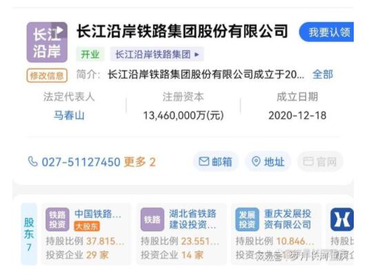 工商信息顯示,長江沿岸鐵路集團重慶有限公司有兩大股東,分別為:長江沿岸鐵路集團(持股85.04%)、重慶發展投資有限公司(持股14.96%)。