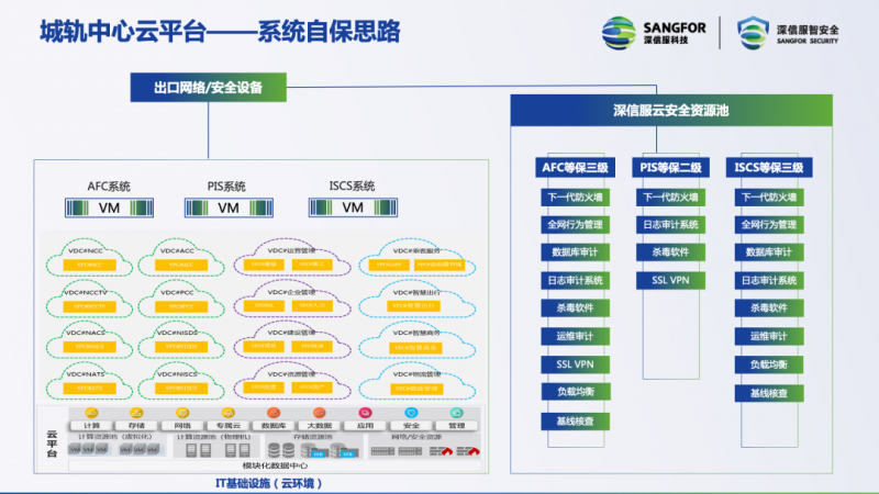深信服圍繞“系統自保、平臺統保、邊界防護、等保達標、安全確保”二十字方針的總體策略,為用戶量身定制了城軌云平臺安全整體方案,并且已經在南京、天津、西安等8個城市軌道交通云平臺中實現了落地。