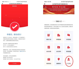 4、報名成功后可在個人中心查看報名信息和簽到二維碼。