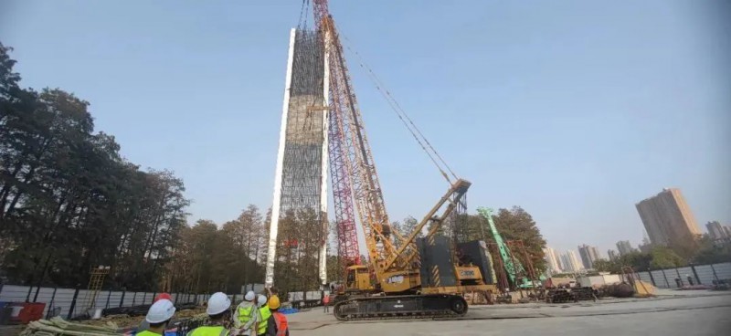 施工準備階段,12號線工程項目部積極協調處理,克服周邊環境條件復雜的困難,確保材料設備及時運至現場。由于地連墻鋼筋籠較長,大噸位鋼筋籠吊裝風險高、難度大,項目部組織專家對施工方案進行論證,嚴格把控各道工序,在正式起吊前對起吊負荷、起吊設備、吊點位置等進行準確復核,順利完成了首幅地連墻鋼筋籠入槽。