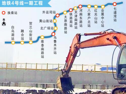 2017年,烏魯木齊市地鐵4號線一期工程全線30個施工點全部進場,2017年內已經實現了所有施工點全部進入正式施工階段。