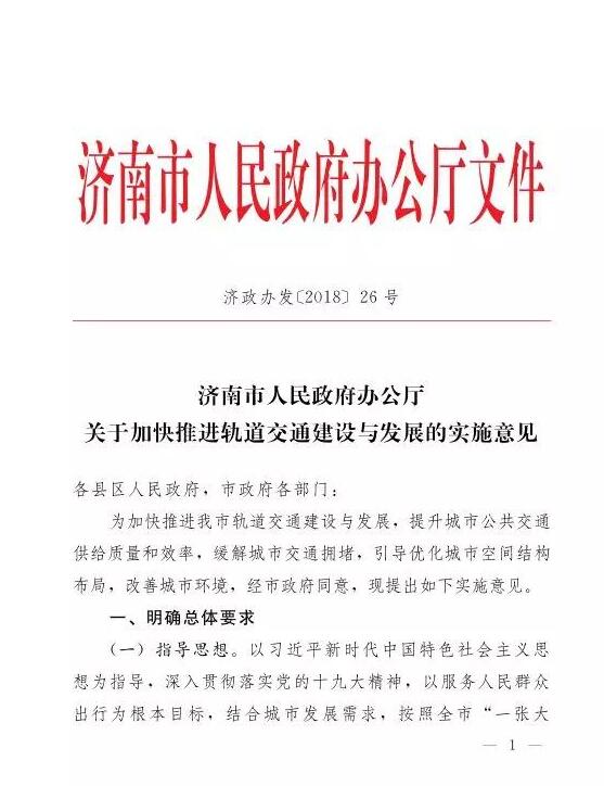 2018年8月8日,《濟(jì)南市人民政府辦公廳關(guān)于加快推進(jìn)軌道交通建設(shè)與發(fā)展的實(shí)施意見》(以下簡稱《實(shí)施意見》)正式發(fā)布。