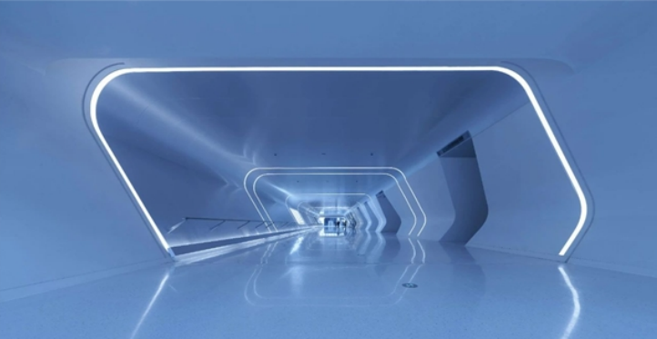 地下通道的照明別具匠心,通過(guò)空間中的漫射光為旅客增添了舒適感,同時(shí)也減弱了地下空間和地面自然光環(huán)境的割裂。此外,南北地下軸線(xiàn)、安檢出口、站房外通道、停車(chē)場(chǎng)、隧道、售票廳等處的照明,處處可見(jiàn)指示性線(xiàn)條燈光,方便旅客迅速找到目的區(qū)域。
