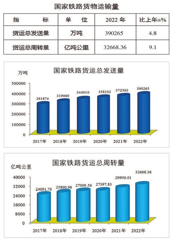 2022年,中國國家鐵路集團有限公司以習近平新時代中國特色社會主義思想為指導,以習近平總書記對鐵路工作的重要指示批示精神為根本遵循,堅決落實黨中央、國務院的決策部署,以迎接黨的二十大和學習宣傳貫徹黨的二十大精神為主線,堅持穩中求進工作總基調,高效統籌疫情防控和鐵路重點工作,統籌發展和安全,有力有效應對多重風險挑戰,推動鐵路高質量發展取得新成效。鐵路安全總體穩定、疫情防控和保通保暢有力有效、建設任務圓滿完成、經營管理規范加強、改革創新持續深化、鐵路科技自立自強能力持續提升,服務國家戰略成效明顯。