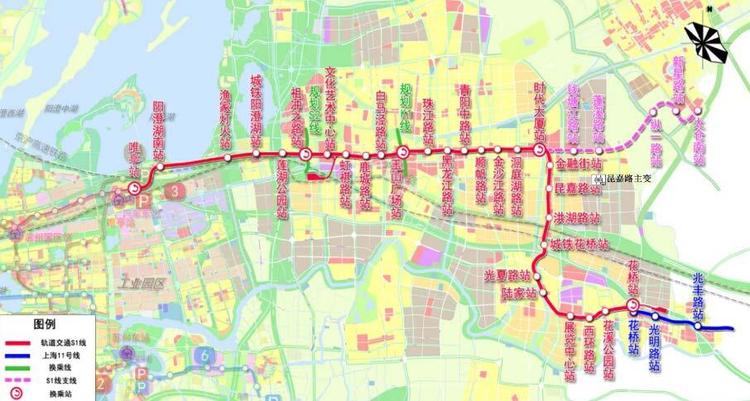 S1線工程起于蘇州工業園區唯亭鎮,與軌道交通3號線唯亭站換乘,沿途經過昆山市西部新城、中心城區核心區、東部經濟技術開發區、陸家鎮、花橋國際商務區,終點與上海11號線花橋站換乘。線路總長約41 km,全部為地下線,設車站28座,均為地下站。全線設設車輛段和停車場各一座,新建一座控制中心,預留遠期延伸至太倉南站的支線(不在本次設計范圍)。推薦方案采用B車型6輛編組,設計時速100km/h。
