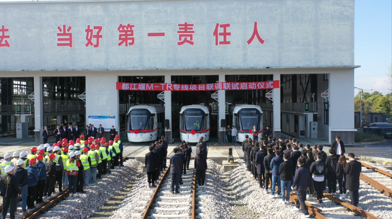 2023年3月29日,川發(fā)軌道公司組織都江堰M(jìn)-TR旅游客運(yùn)專線運(yùn)營(yíng)單位及所有參建單位在中興停車場(chǎng)舉行聯(lián)調(diào)聯(lián)試啟動(dòng)儀式,標(biāo)志著M-TR項(xiàng)目向著開通運(yùn)營(yíng)的目標(biāo)又邁出了重要一步。