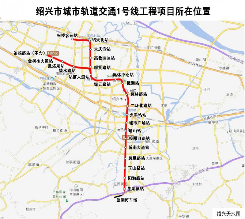 根據(jù)紹興市城市軌道交通1號(hào)線工程可行性研究成果,主線工程自笛揚(yáng)路站(不含)至鑒湖鎮(zhèn)站,長(zhǎng)度為24.2公里,設(shè)18座車站;支線工程自站前大道至柯橋客運(yùn)站,長(zhǎng)7.1公里,設(shè)站6座。全線工程總占地面積28.8公頃,約432畝,總選址面積220.2公頃,約3301畝。建設(shè)標(biāo)準(zhǔn)為城市軌道交通,雙線,設(shè)計(jì)最高時(shí)速100公里,采用B型車6輛編組,預(yù)計(jì)2021年完工。